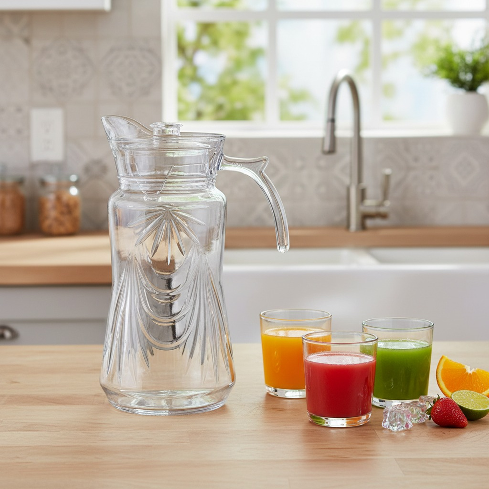 (Jarra de vidrio ideal para preparar tus bebidas este verano).