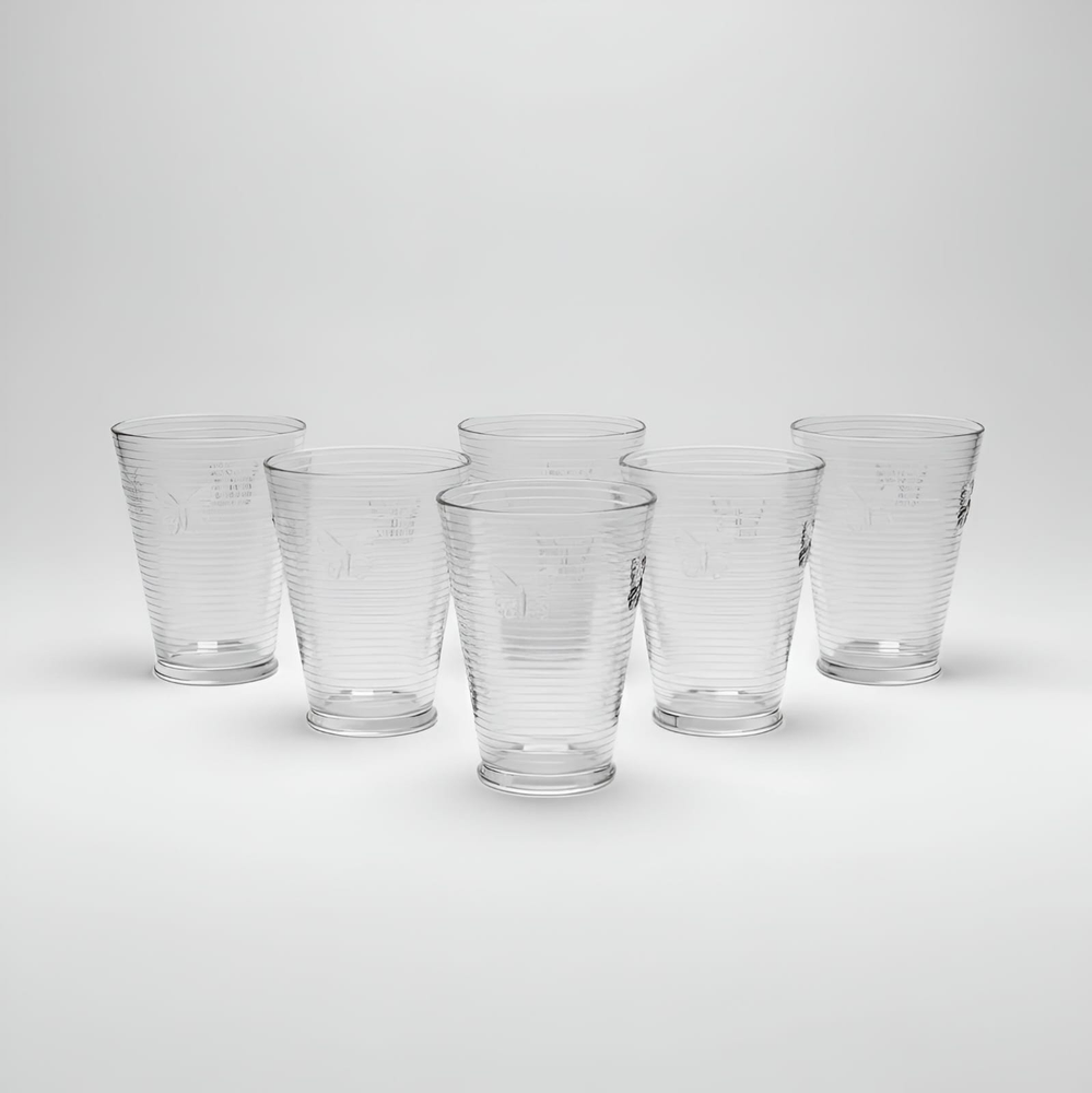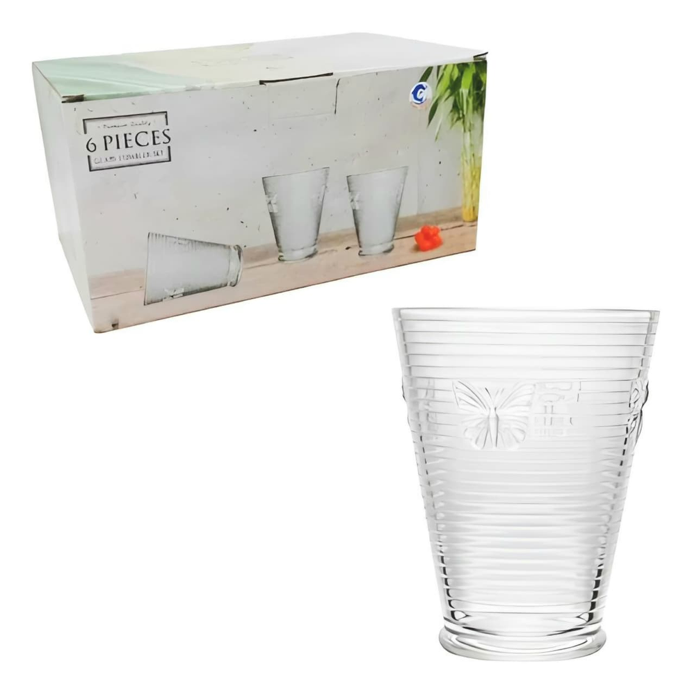 (Set x 6 vasos. Hermoso diseño con mariposas. Ideal para usar en tus eventos importantes).
