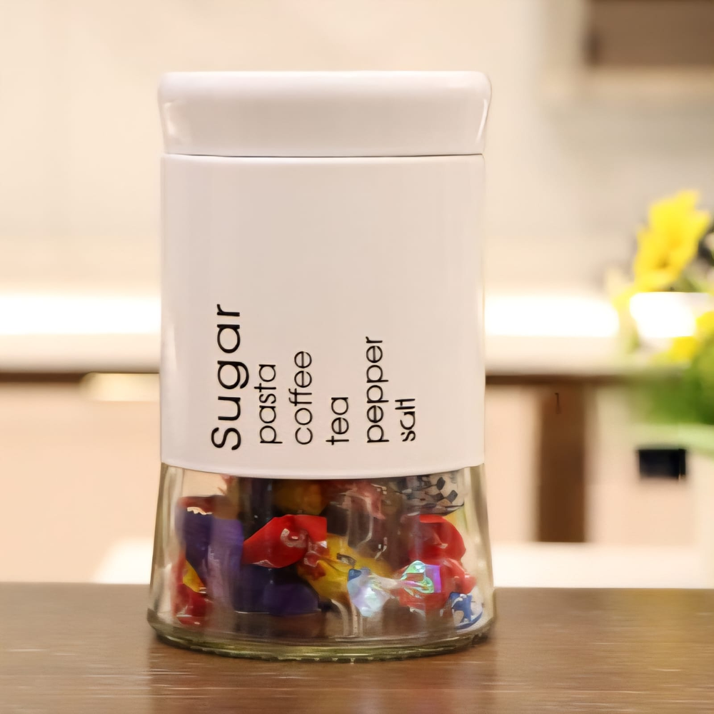 (Frasco de vidrio tamaño mediano de color blanco. Ideal para colocar azúcar, café, yerba, pastas o lo que usted desee).
