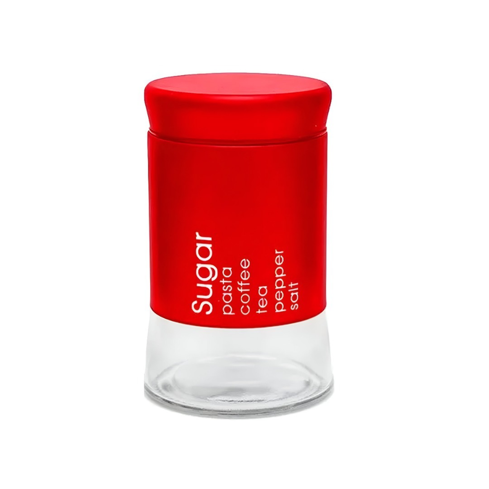 (Frasco de vidrio tamaño mediano de color rojo. Ideal para colocar azúcar, café, yerba, pastas o lo que usted desee).
