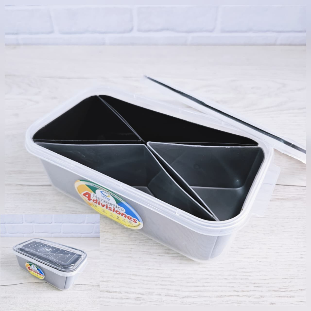 (Este tupper cuenta con 4 divisiones extraíbles. Apto microondas y lavavajillas).