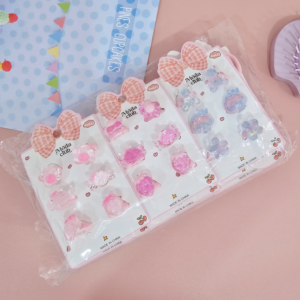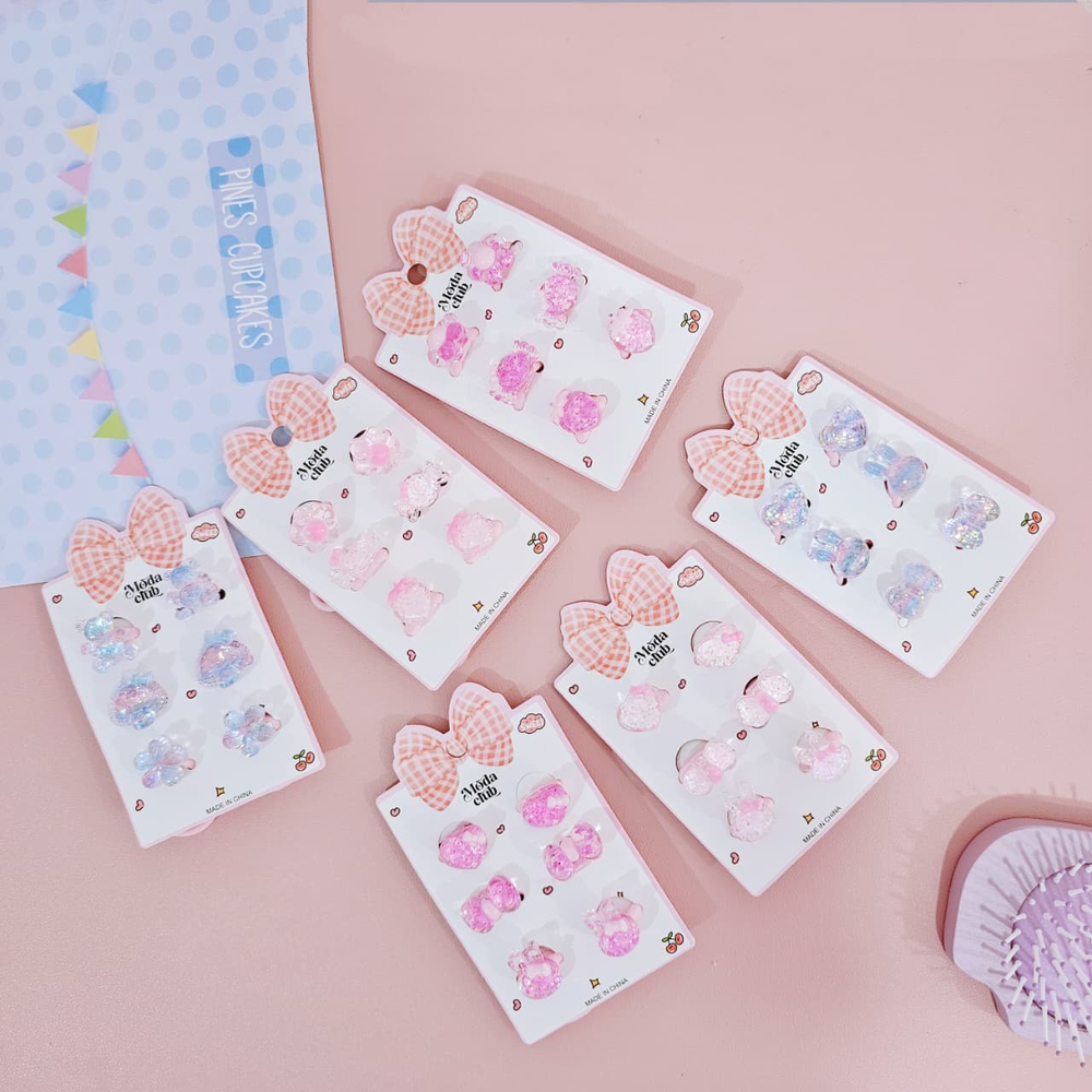 (Blíster x 3 pares de colitas para el pelo con dijes corazón, moño y conejo decorado con glitter. Ideal para realizar peinados).