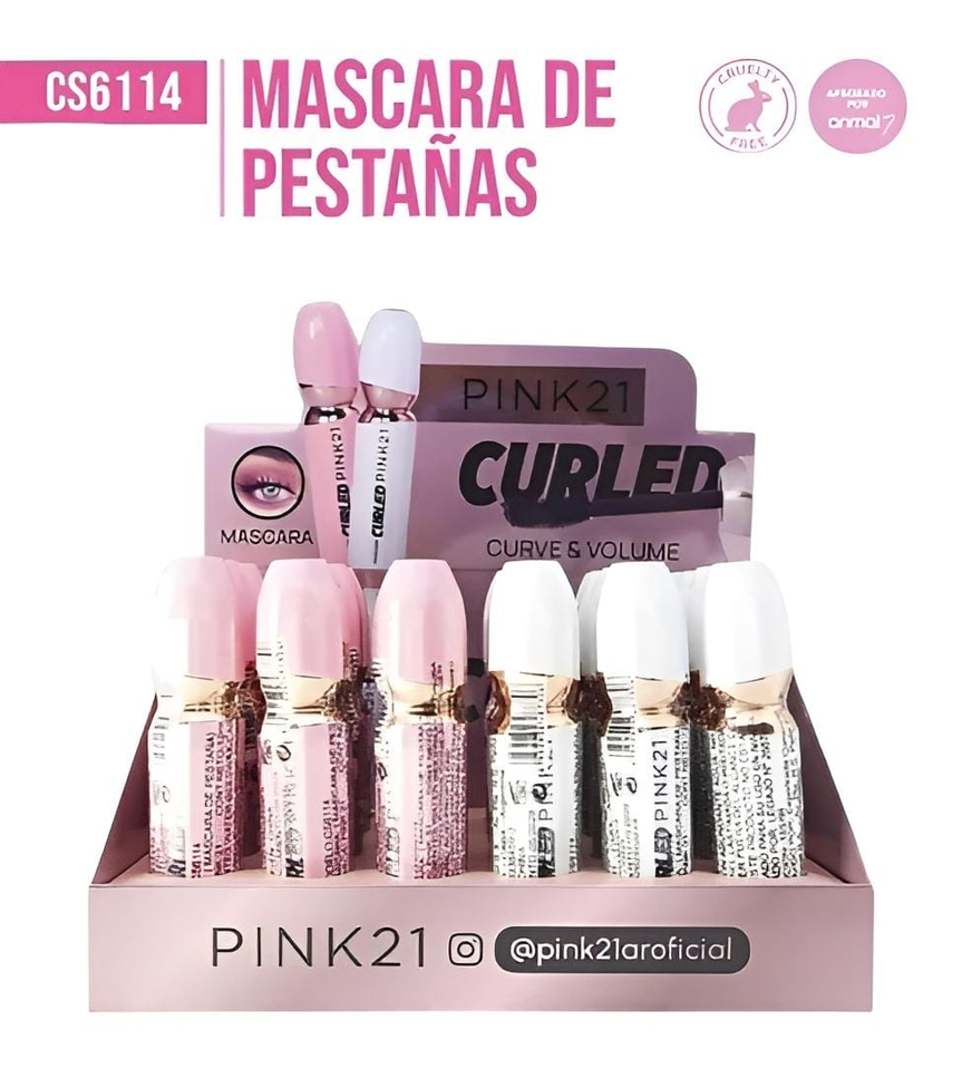 (Caja x 24 Unidades. Esta máscara de Pink 21 está diseñada para definir, dar volumen y curvas a tus pestañas).