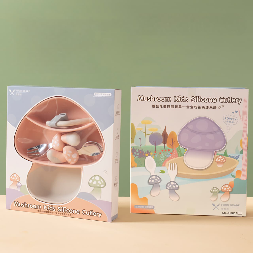 (Set de alimentación de silicona para bebés. Incluye varias piezas, como plato, cubiertos y un sorbete para sopa. Cuenta con un diseño de ventosa grande que lo fija firmemente a la mesa, lo que garantiza que los niños no puedan empujarlo ni volcarlo mientras comen. Está fabricado con silicona de grado alimenticio, libre de BPA).