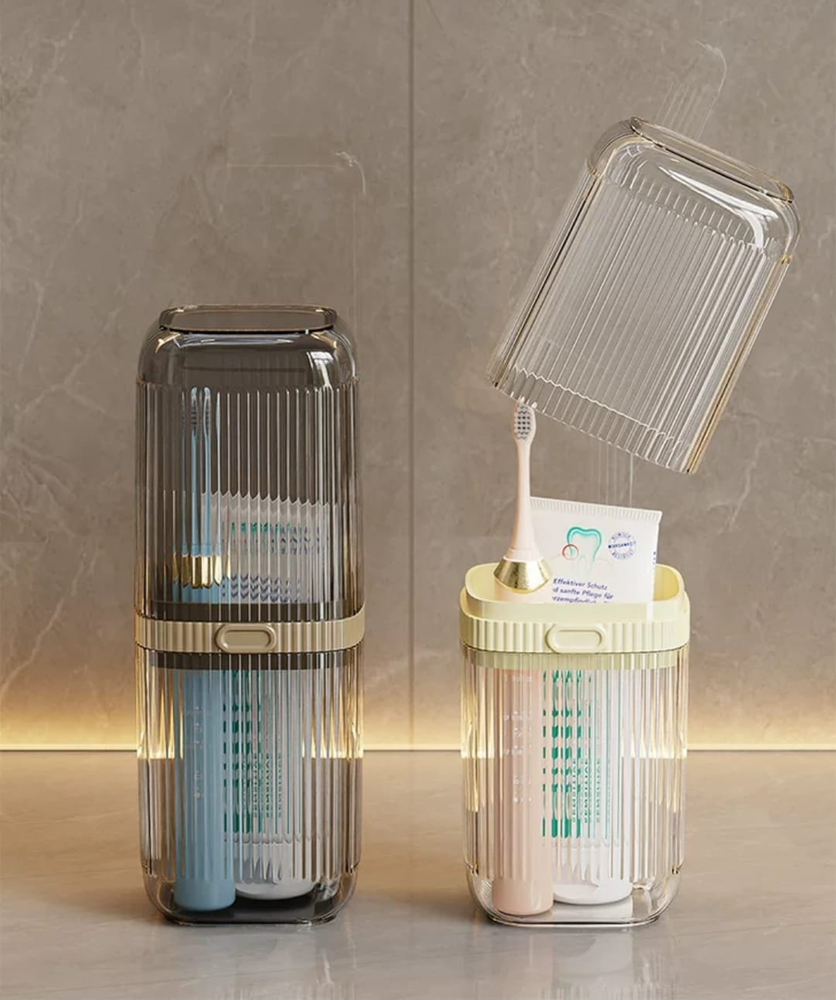 (Porta cepillo multiuso. Cuenta con un compartimento amplio y puede utilizarse uno de los extremos como vaso. Ideal para viajes).
