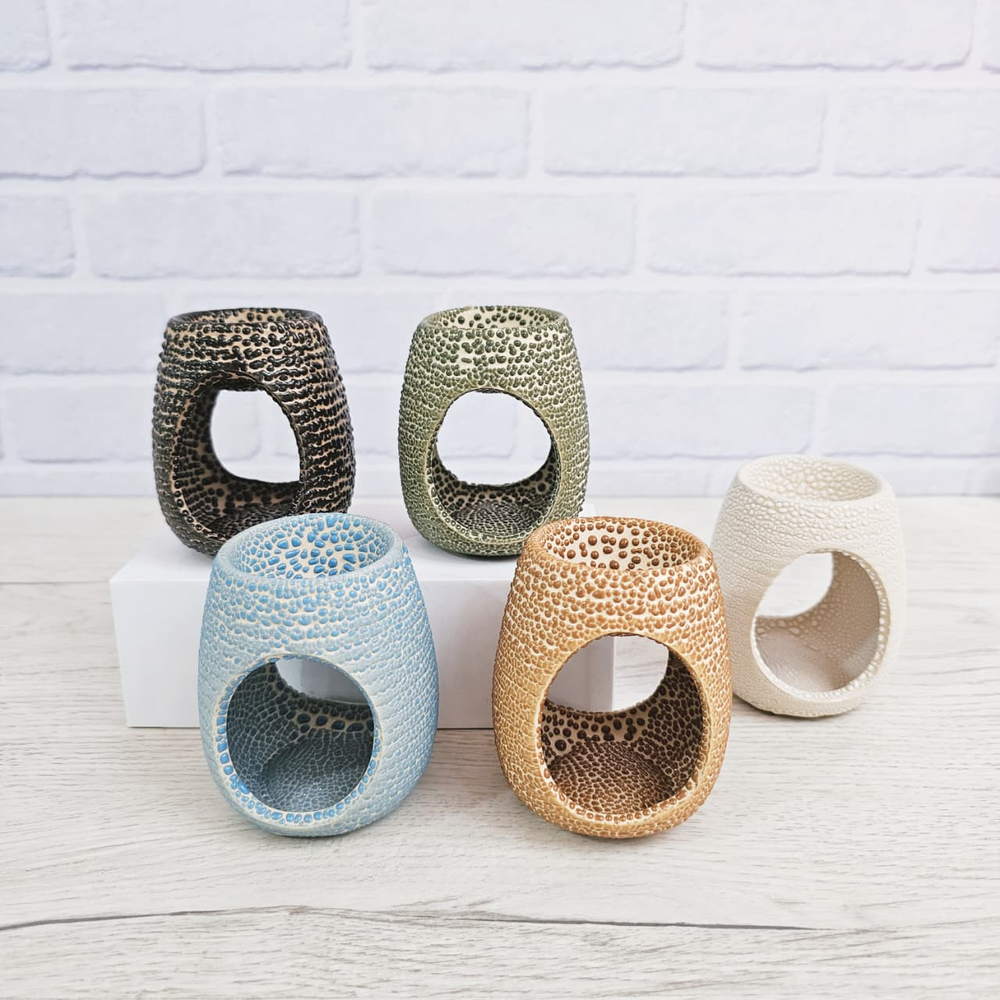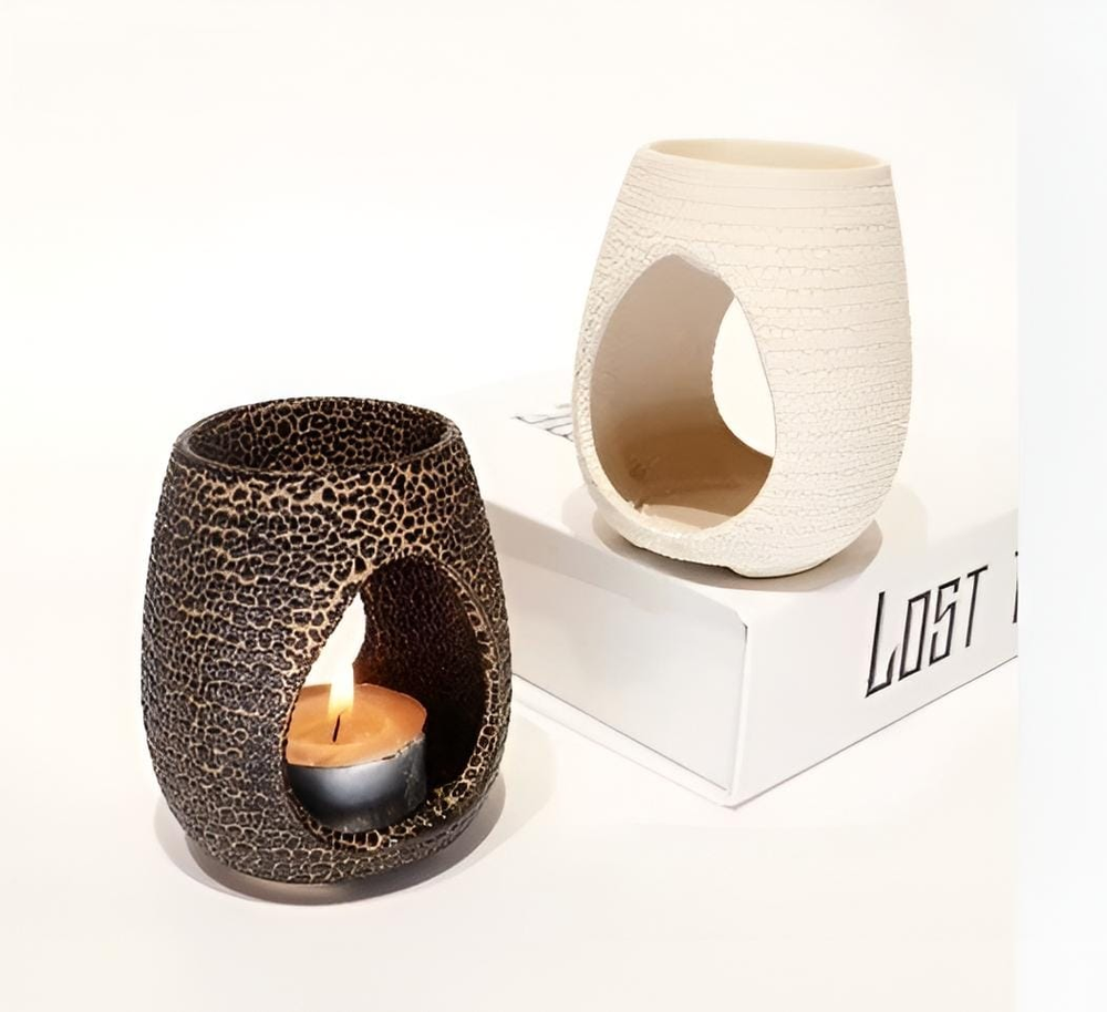 (Hornitos de cerámica con textura de piedra se pueden usar para aromatizar el ambiente con esencias o aceites esencial)