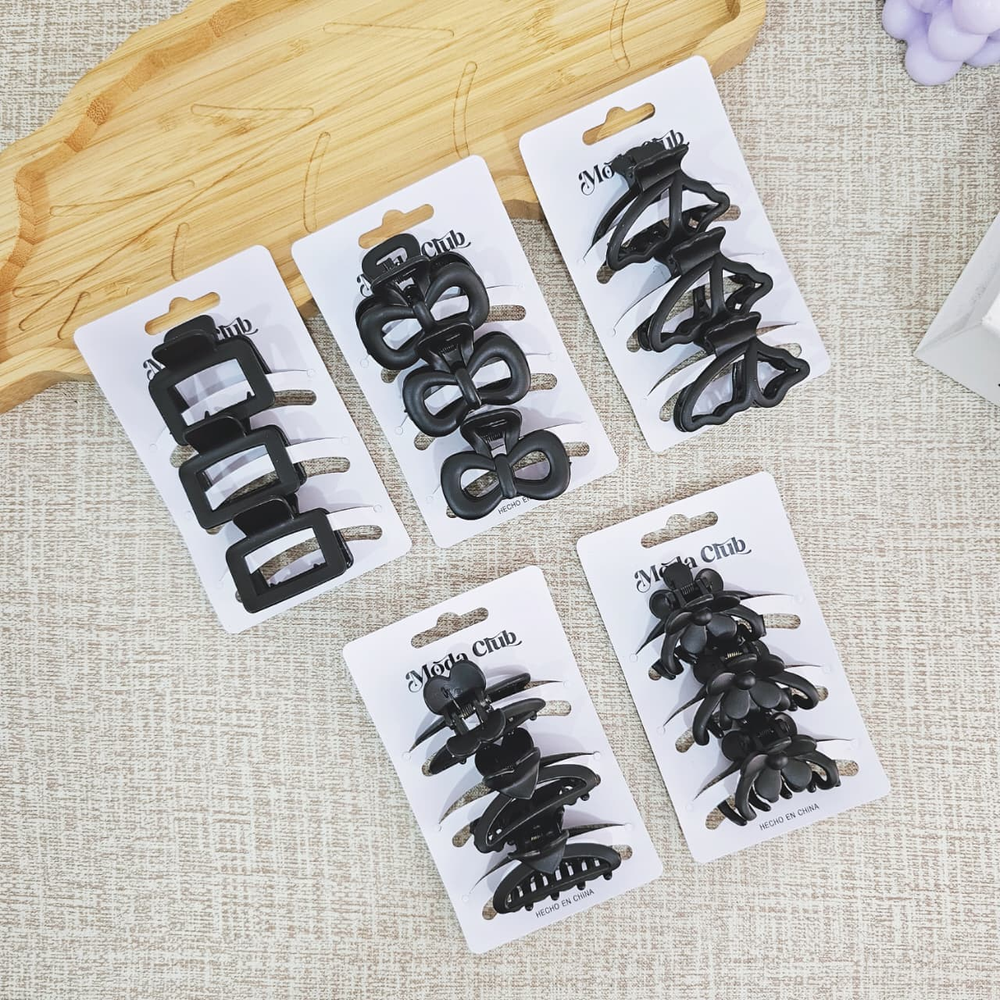 (Pack x 12 Blíster. Broches, el blister lleva 3 broches negro matte para el cabello. Disponible en varios diseños a elección).