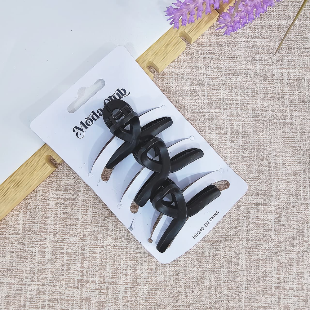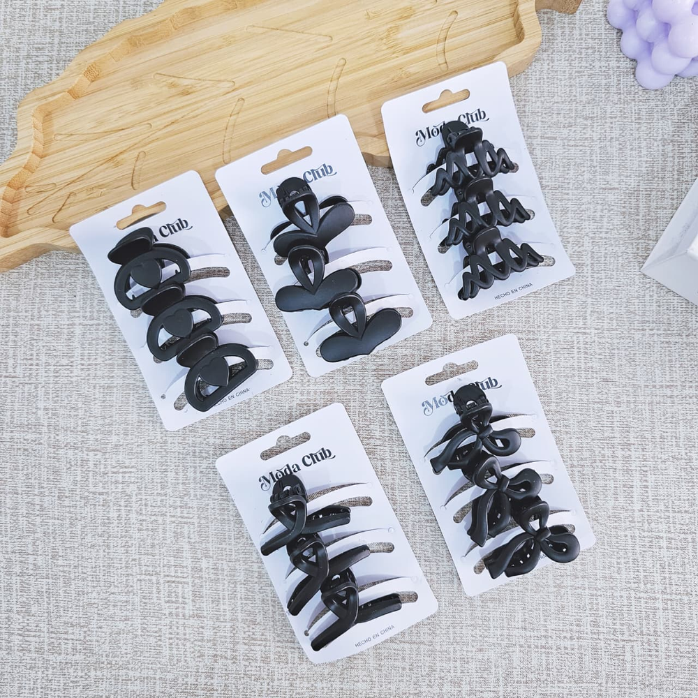 (Pack x 12 Blíster de Broches, el blíster lleva 3 broches negro matte para el cabello. Disponible en varios diseños a elección).