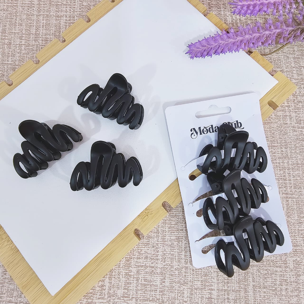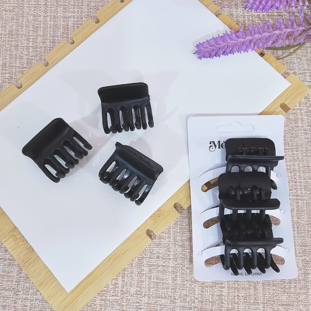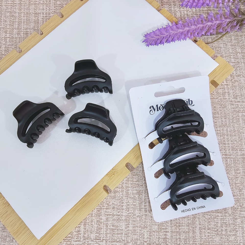 (Pack x 12 Blíster de Broches, el blíster lleva 3 broches negro matte para el cabello. Disponible en varios diseños a elección).