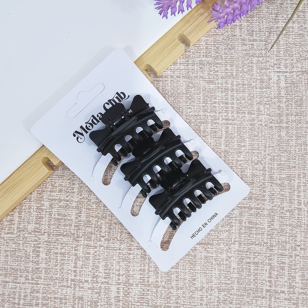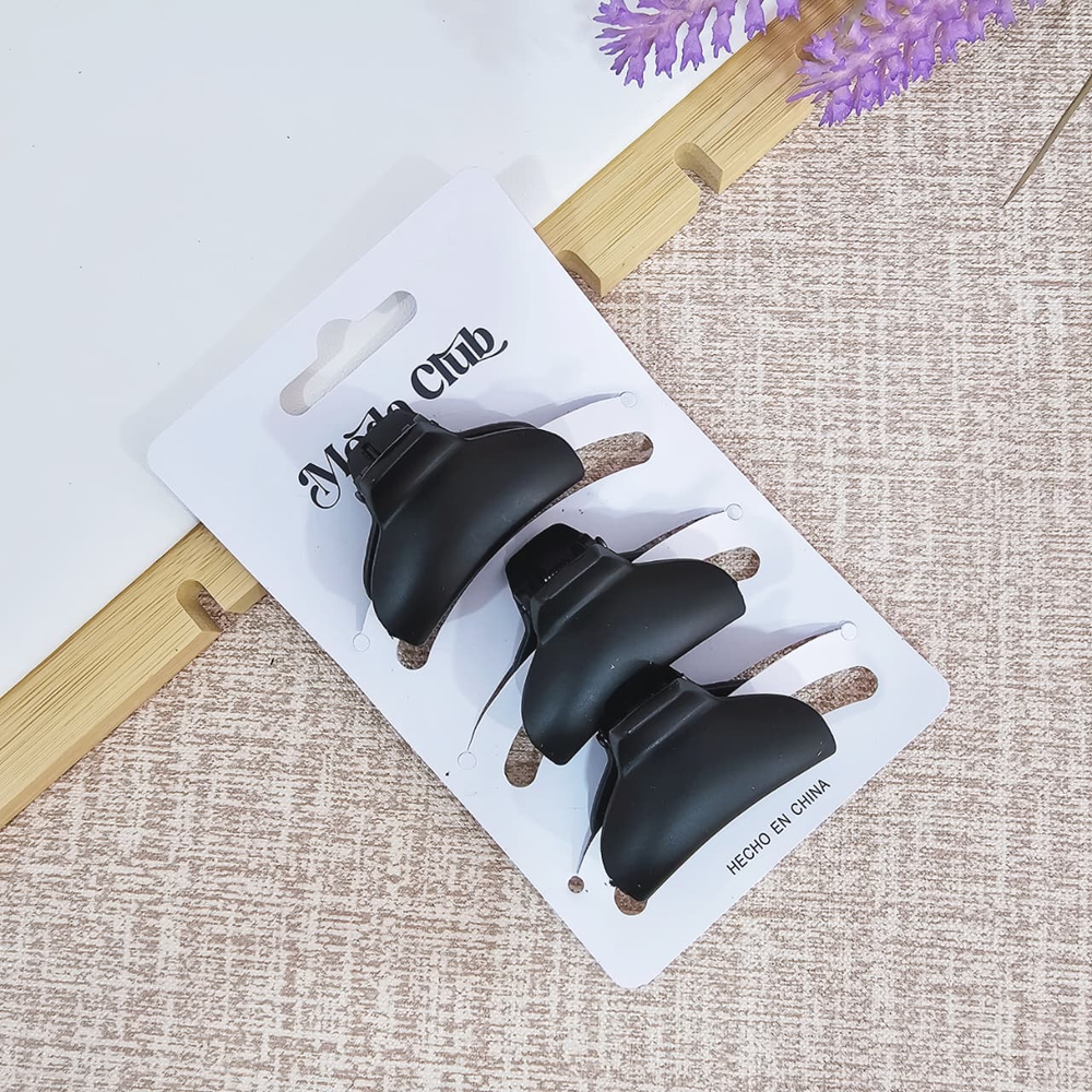 (Pack x 12 Blíster de Broches, el blíster lleva 3 broches negro matte para el cabello. Disponible en varios diseños a elección).