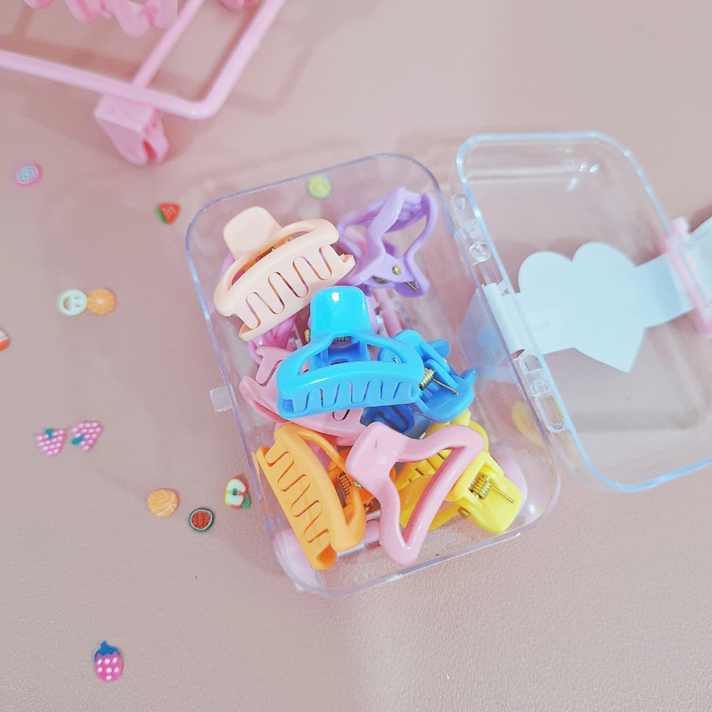 (Broches pequeños de plástico colores pasteles, cada set contiene 10 minis broches aprox., ideales para sujetar o decorar el cabello, especialmente en peinados para niñas o para recoger secciones pequeñas de cabello en adultos. Están hechas de plástico y resortes, lo que las hace duraderas para el uso diario). (UT37)