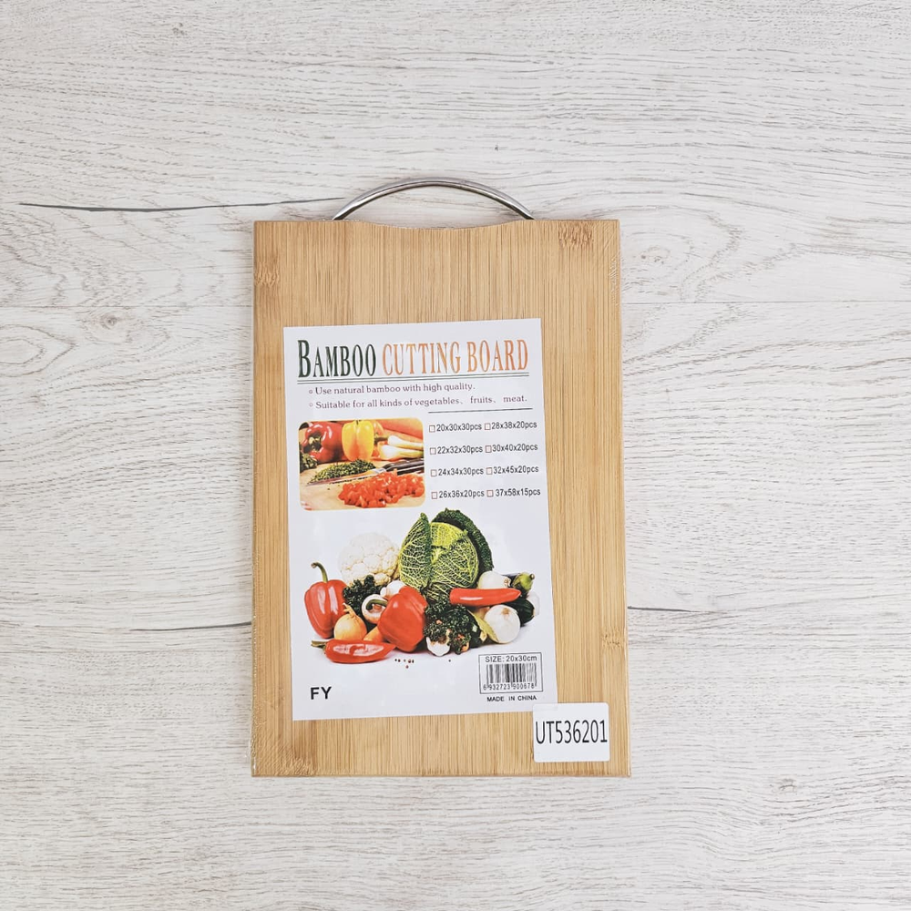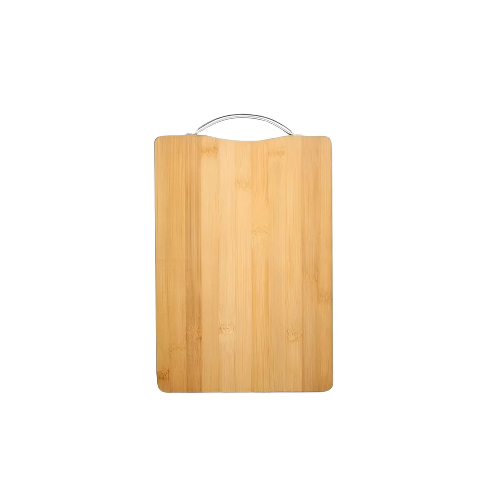 (Tabla de picar o para picadas de forma rectangular y cuenta con manija de acero para poder agarrarla o colgarla).