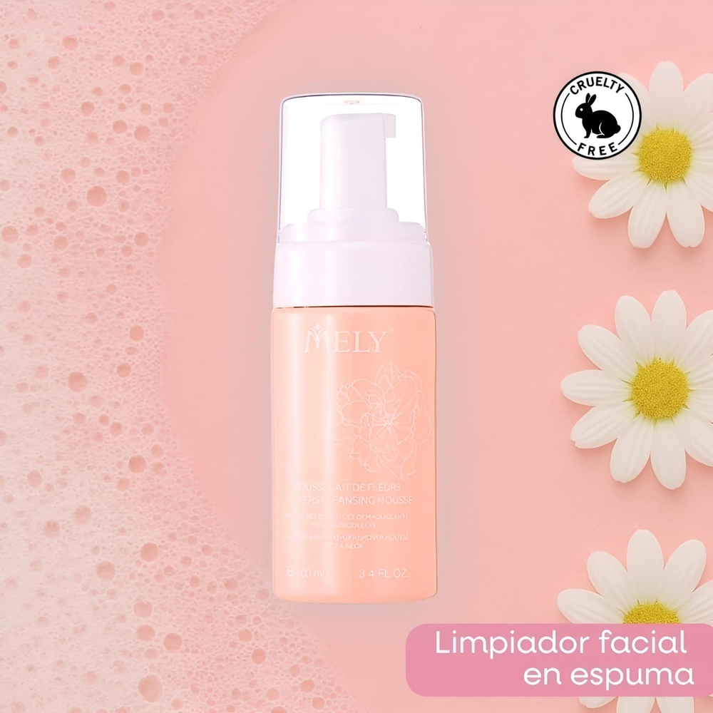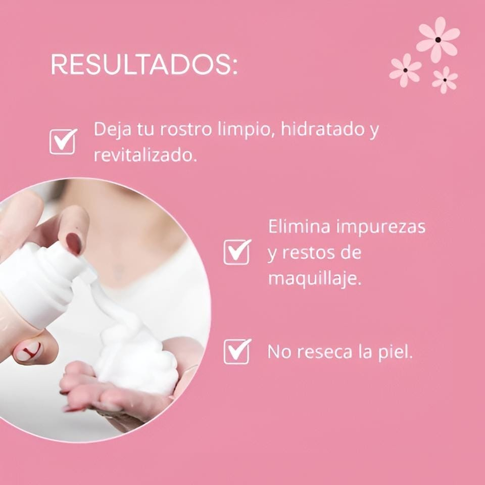 (Esta espuma ligera elimina impurezas y restos de maquillaje, dejando tu rostro limpio, hidratado y revitalizado gracias a sus extractos naturales de flores. Ideal para uso diario).