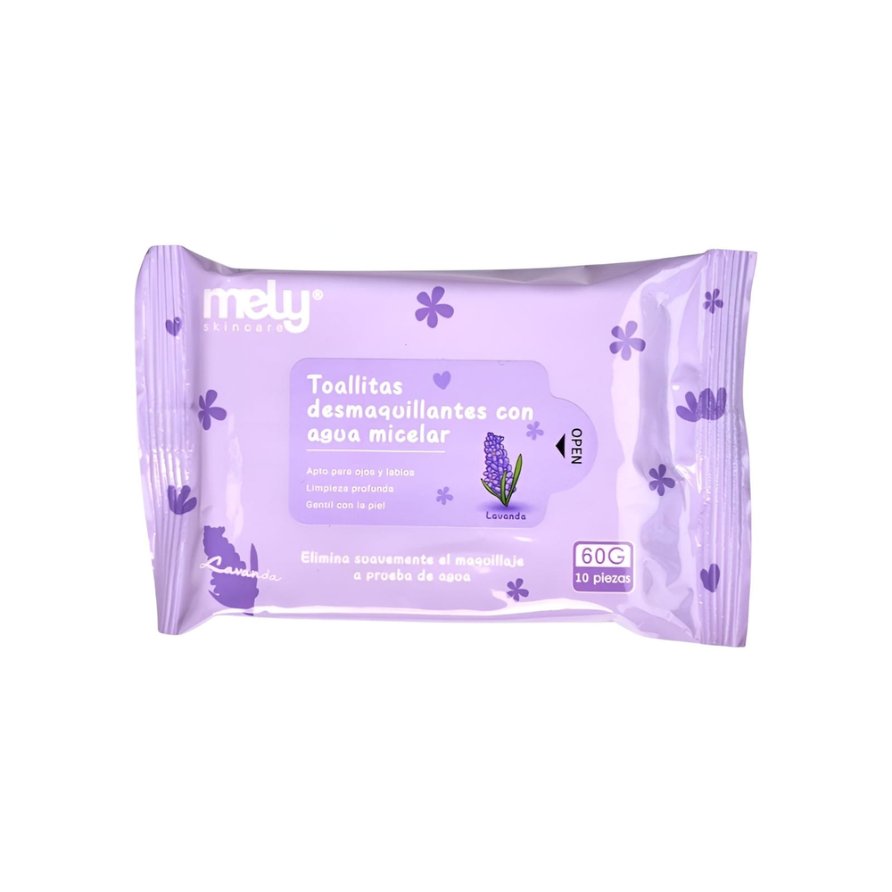 (Toallitas Desmaquillantes de Lavanda "Mely". Estas toallitas contienen 10 de ellas Ideales para desmaquillar y cuidar tu piel dándote hidratación).