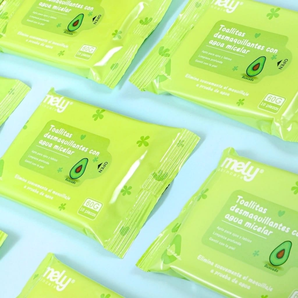 (Toallitas Desmaquillantes de Palta "Mely". Estas toallitas contienen 10 de ellas Ideales para desmaquillar y cuidar tu piel dándote hidratación).
