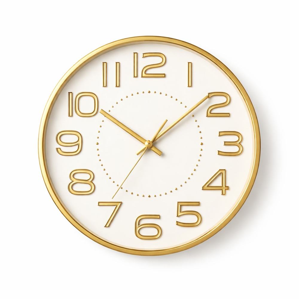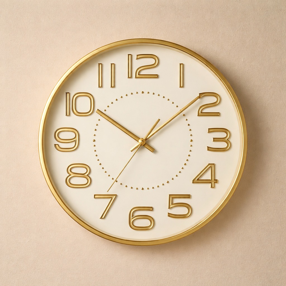(Reloj de pared color dorado. Sirve para decorar cualquier espacio en tu casa, oficina, etc).