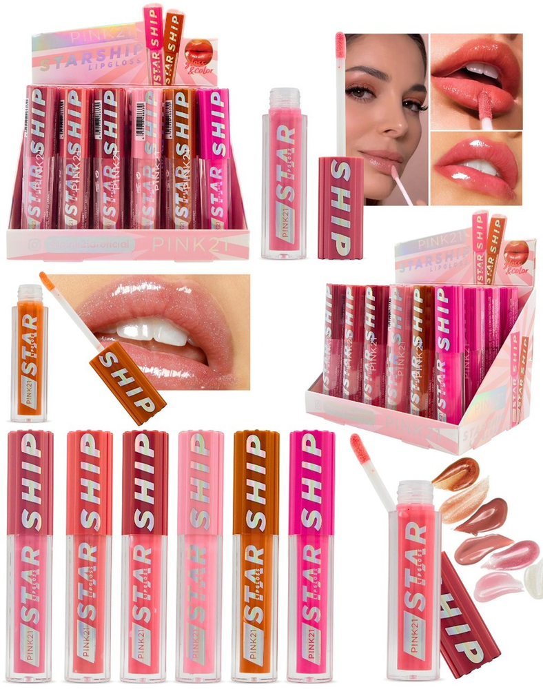 (Lipgloss Pink Girls marca "Pink 21". Cuenta con 6 labiales con aromas diferentes. Ideal para mantener tus labios hidratados).v