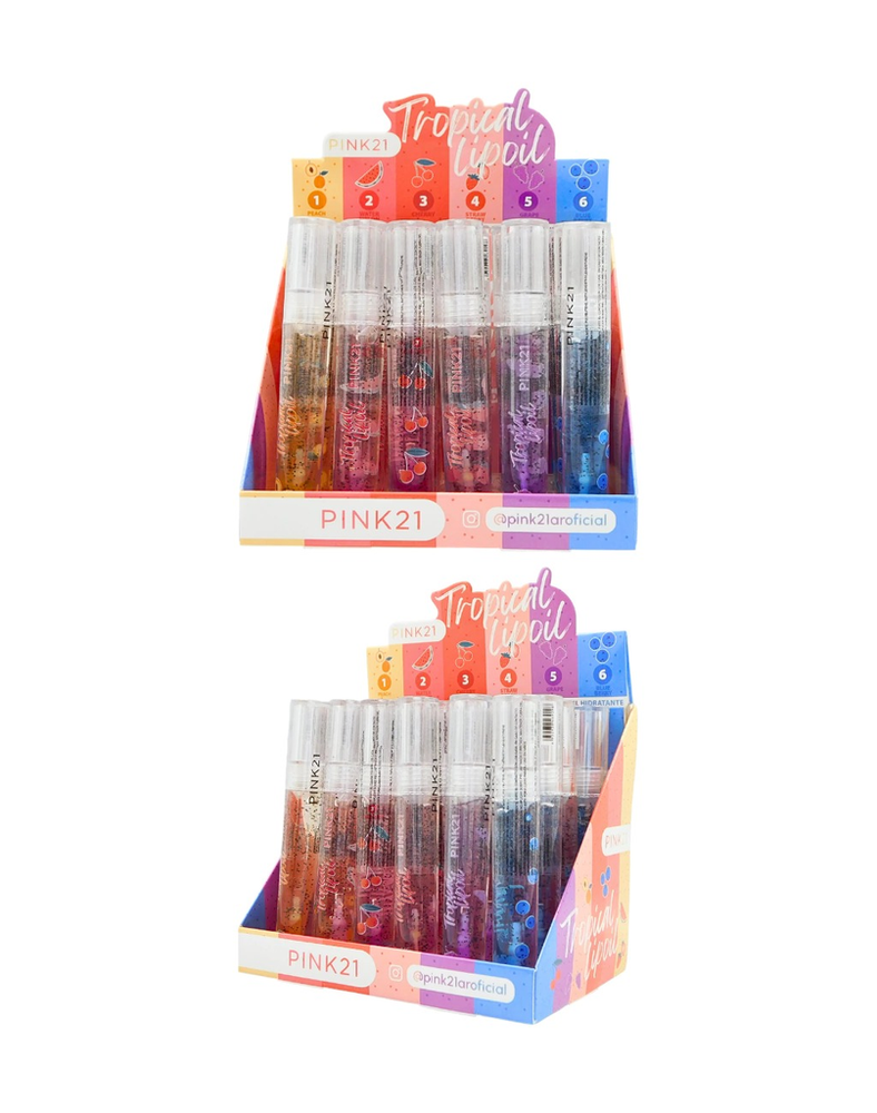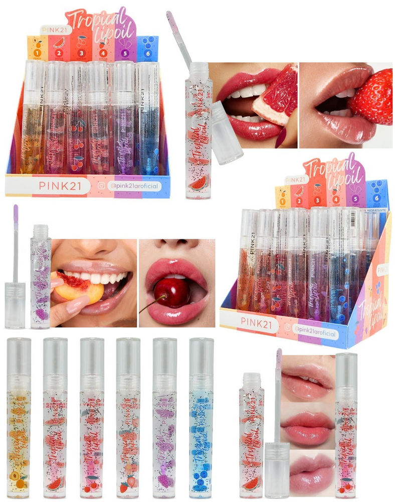(Lipgloss Pink Girls marca "Pink 21". Cuenta con 6 labiales con aromas diferentes. Ideal para mantener tus labios hidratados).