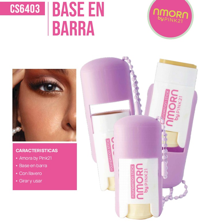 (Base de Maquillaje "Pink 21" con acabado mate suave y textura fluida que ofrece alta cobertura. 6Tonos diferentes a elección).