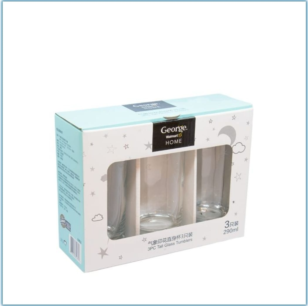 (Incluye 3 vasos de vidrio transparente, diseño con motivos de cielo).