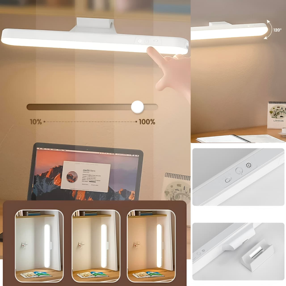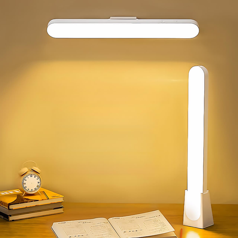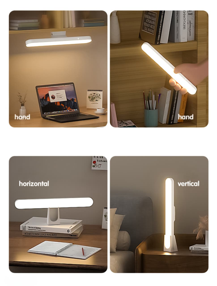(Esta lámpara es una luz de escritorio LED recargable y magnética, diseñada para ser portátil o colocarse en una base tanto horizontal como verticalmente).