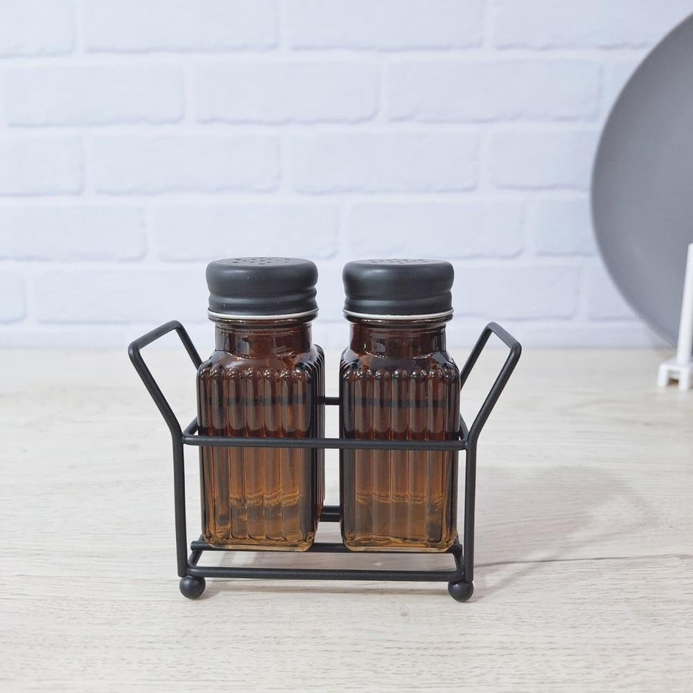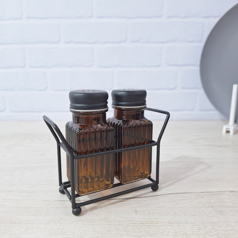 (Set de condimentos con base metálica, diseñado para organizar especias de manera eficiente).