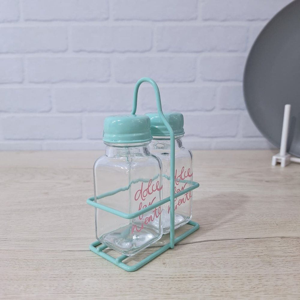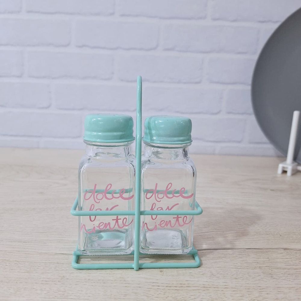 (Set de condimentos con base metálica, diseñado para organizar especias de manera eficiente).
