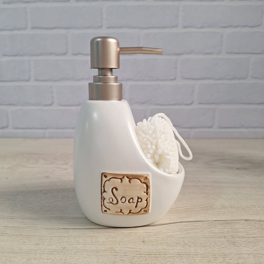 (Dispenser jabón líquido. Su forma permite usarse también como porta esponja. Hecho en cerámica de excelente calidad, ).