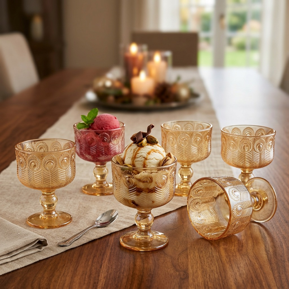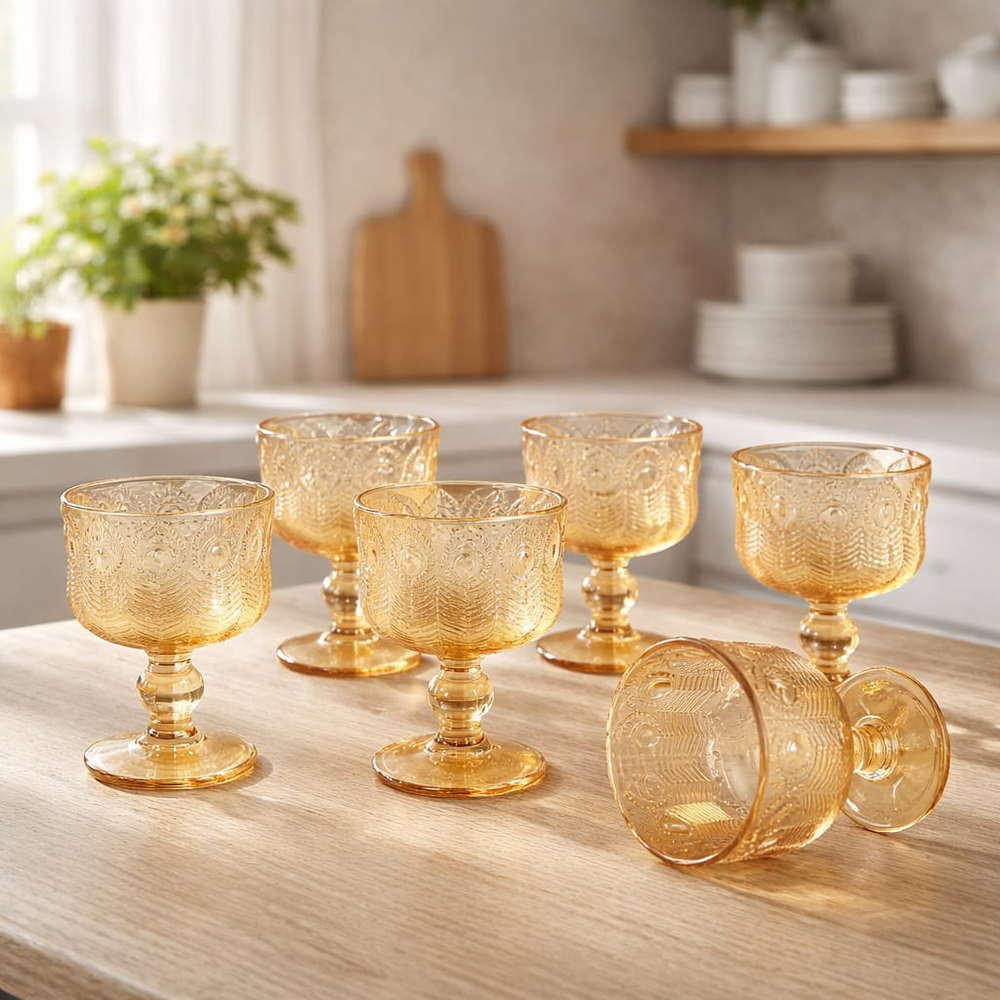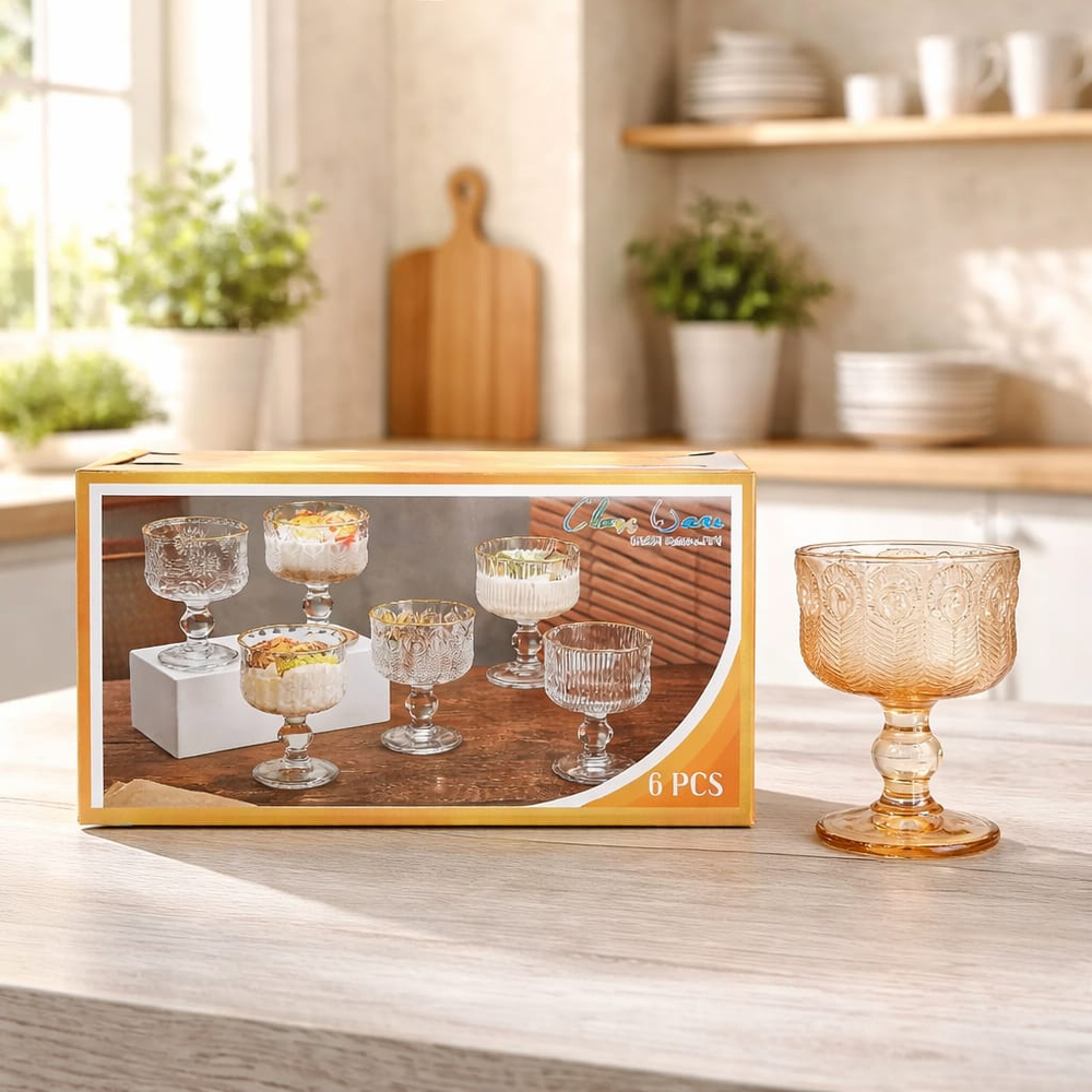 (Juego de copas de vidrio de estilo vintage con diseño labrado).