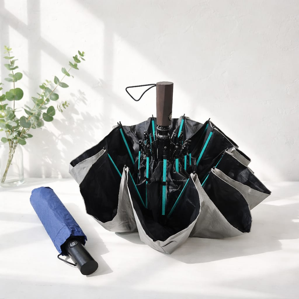 (El paragua presenta un diseño de plegado completamente automatizado, lo que hace que sea fácil de abrir y cerrar solo presionar un botón. Sirve como una herramienta versátil, ofreciendo protección tanto del sol como de la lluvia).