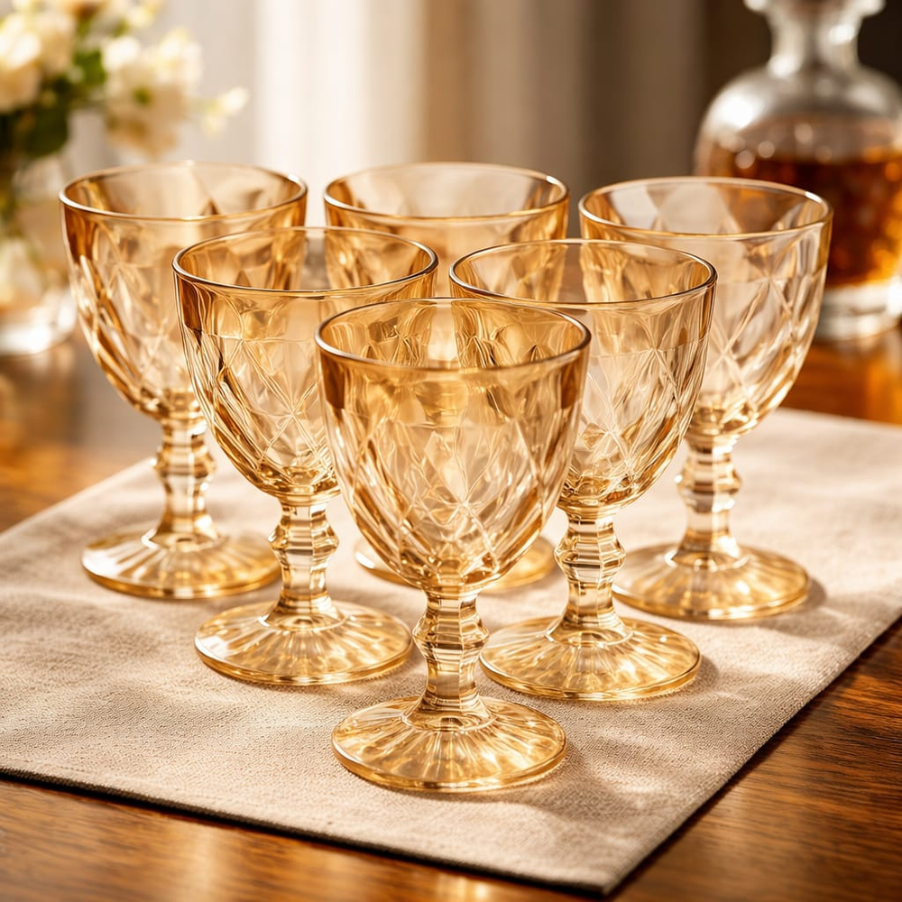 (Juego de copas de vidrio de estilo vintage con diseño labrado).