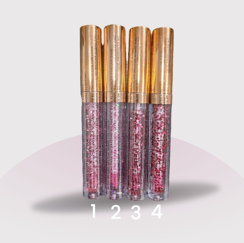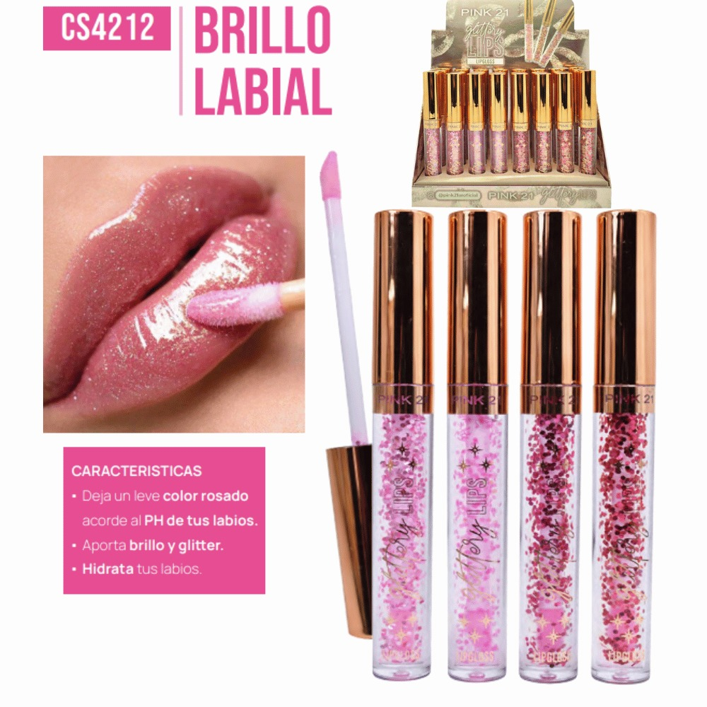 (Brillo Labial con glitter adentro marca "Pink 21". Acabado hidratante y natural. )