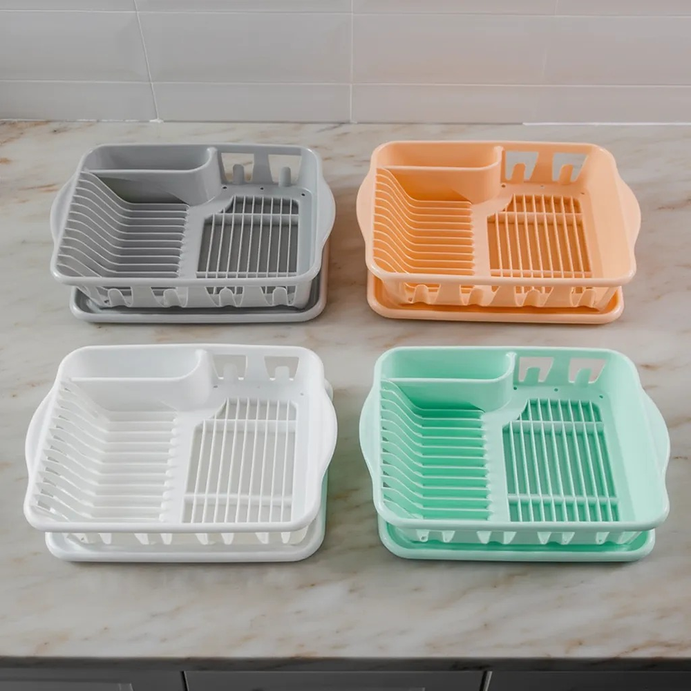 (Incluye una bandeja inferior removible que recolecta el agua. Posee ranuras para platos y espacios laterales dedicados para cubiertos y utensilios. ideales para mantener la mesada seca y organizada).
