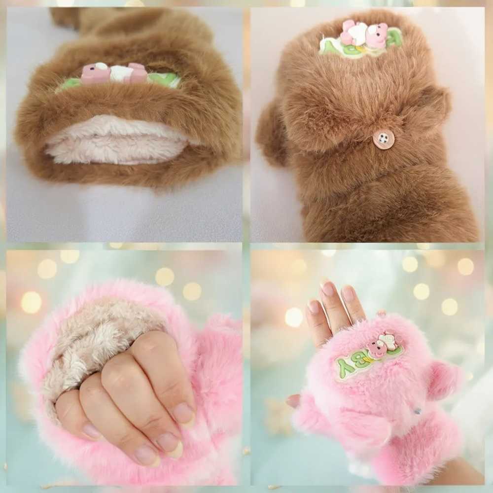 (Guantes con diseño de osito, cuenta con un broche para poder usarlo de dos formas. tela super suavecita y calentita. Ideal para época de frio).