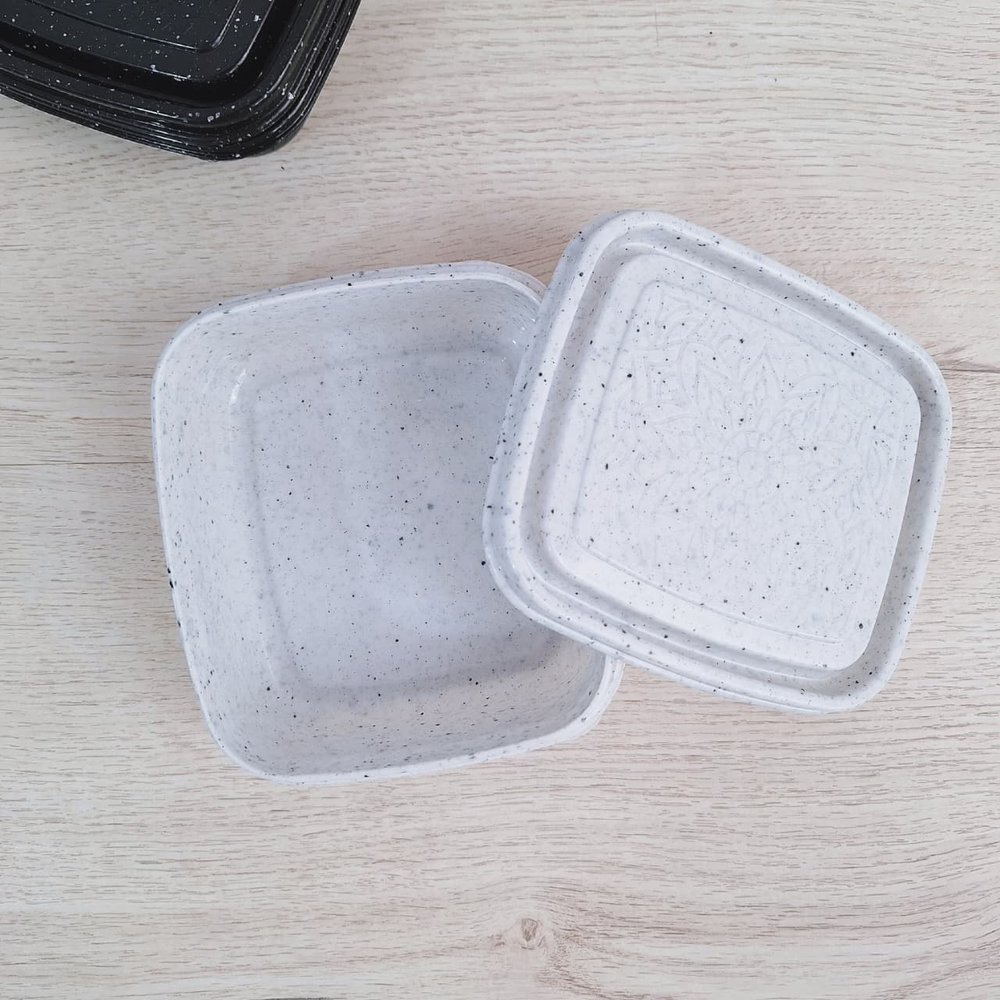 (Diseñados para el almacenamiento seguro de alimentos. Aptos para su uso en microondas, lavavajillas y freezer. Diseño tipo granito con tapa de mandala).
