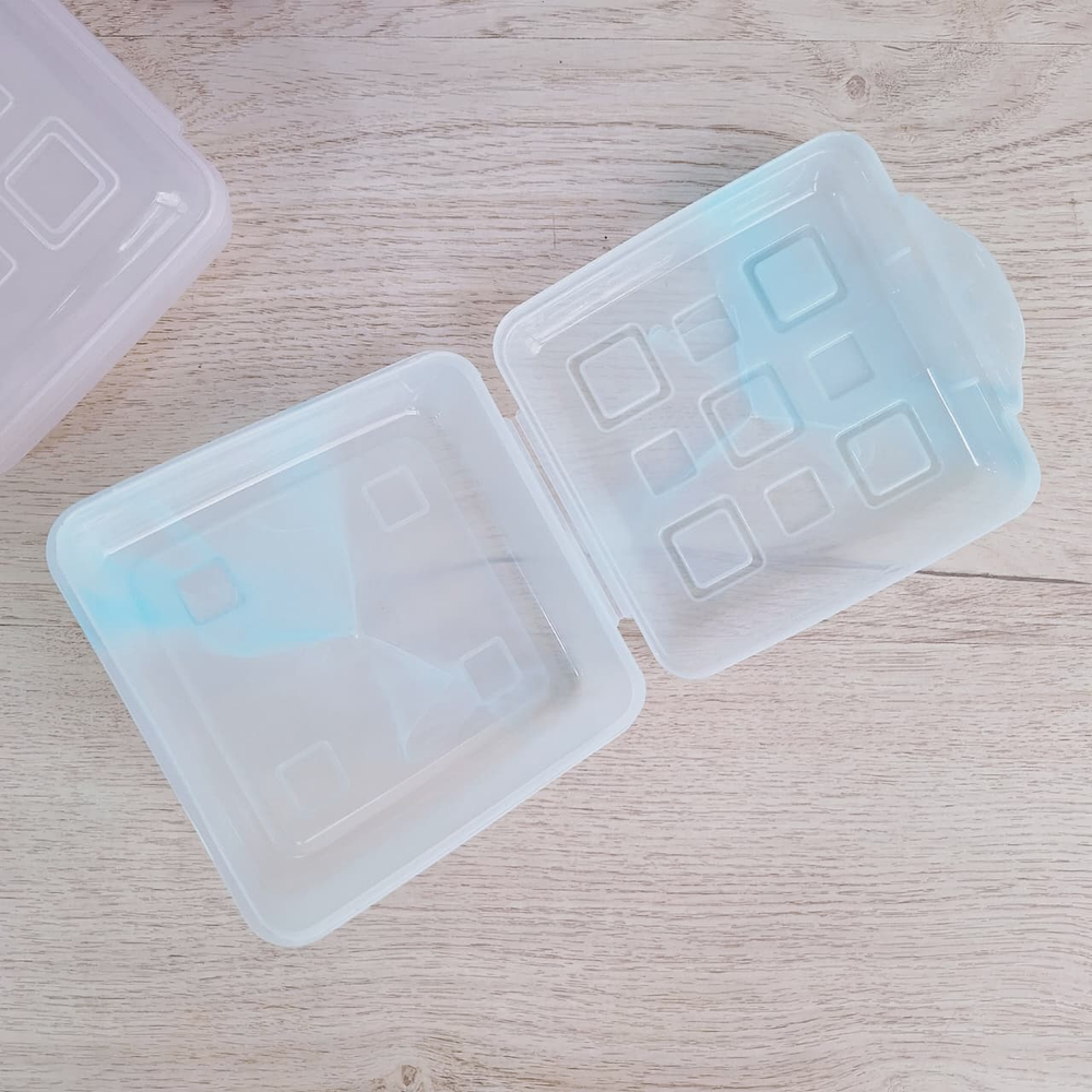 (Recipiente con diseño cuadrado y compacto. Con pestaña de fácil apertura y traba de seguridad para impedir que se abra al transportarla).