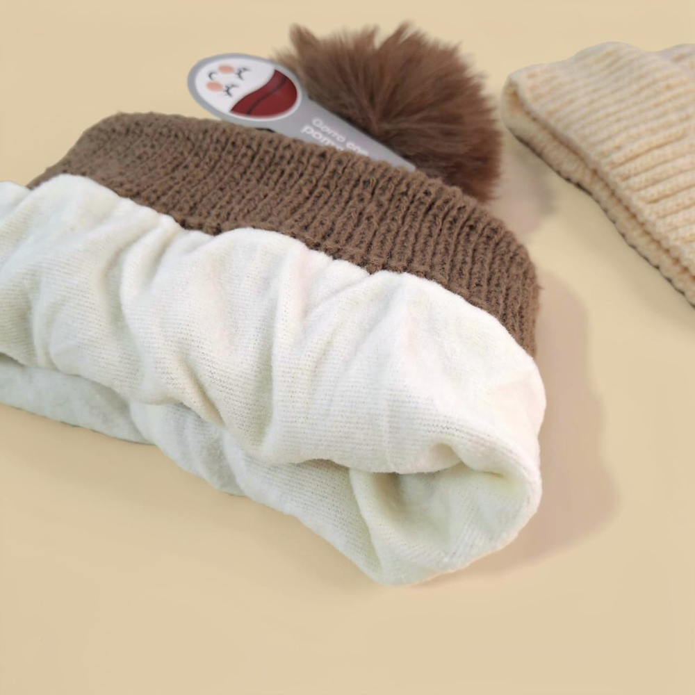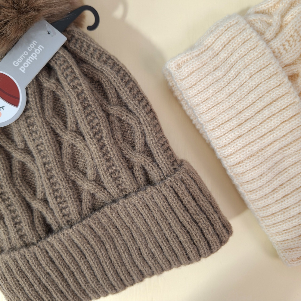 (Gorro con pompón de lanilla con frisa, este viene con un delicado tejido trenzado. Pensado para combinar con cualquiera de tus outfit . Super abrigado ideal para el invierno).