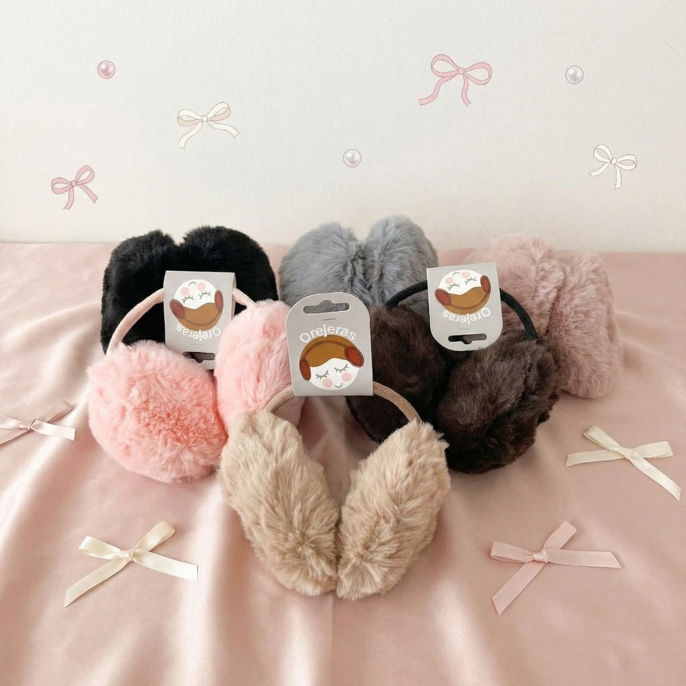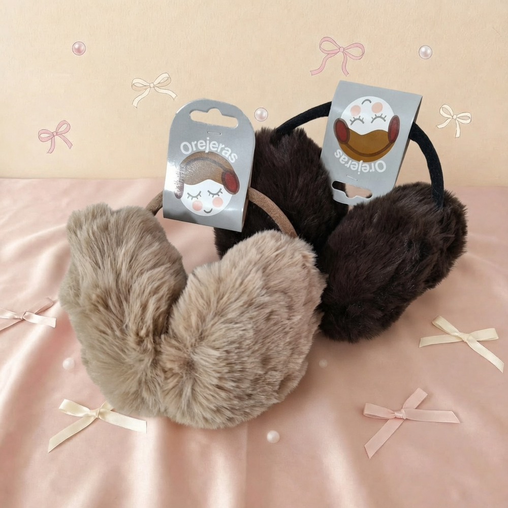 (Orejeras de peluche sintético y diseño plegable. Ideales para el invierno).