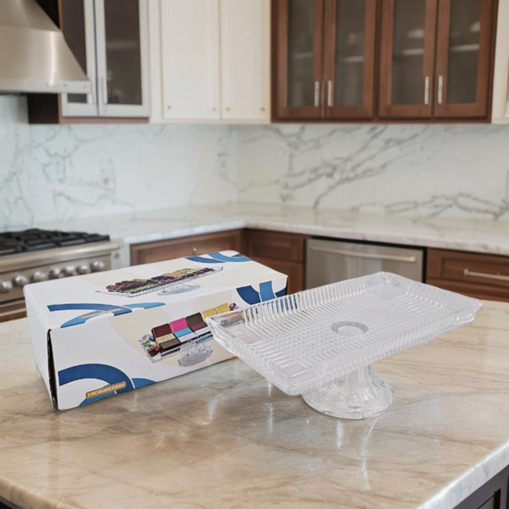 (Centro de mesa de vidrio elegante . Ideal para exhibir frutas , adornos, etc.).