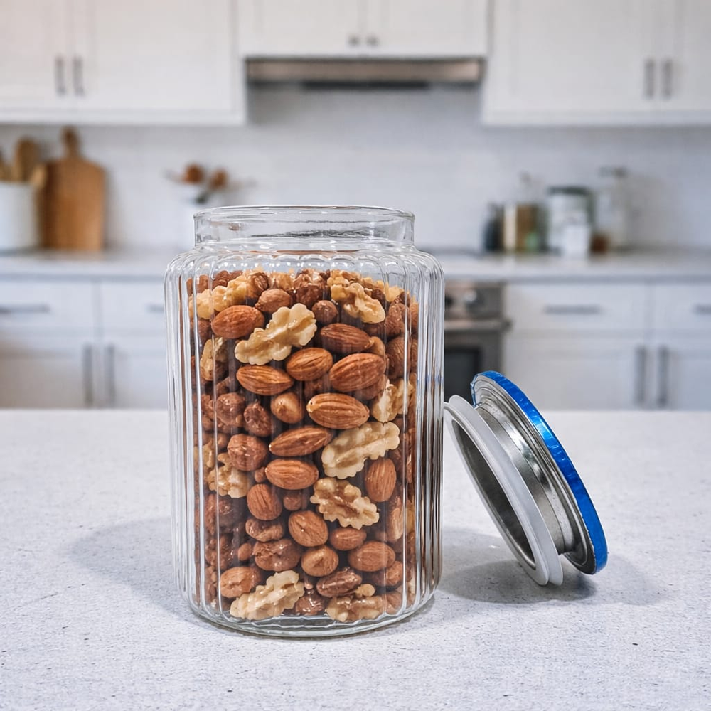 ( Frasco de vidrio diseñado para el almacenamiento de alimentos, ideal para mantener la alacena organizada y con estilo).