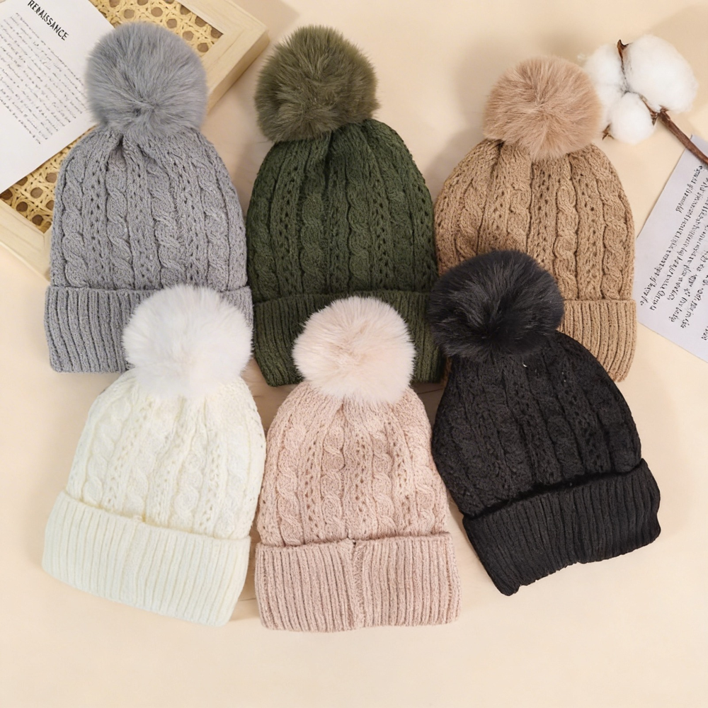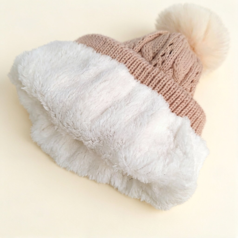 (Gorro con pompón de lanilla con peluche, este viene con un delicado tejido trenzado. Pensado para combinar con cualquiera de tus outfit . Super abrigado ideal para el invierno).