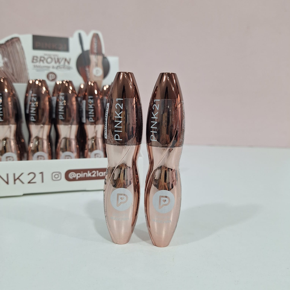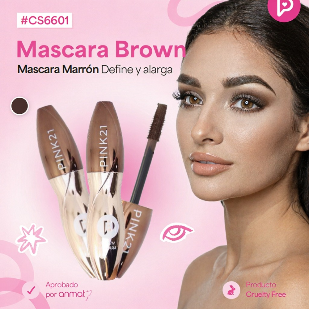 (Máscara de Pestañas Brown"Pink 21" está diseñada para definir y dar volumen a tus pestañas).