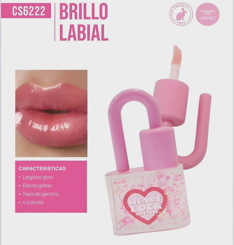 (Brillo Labial Heart Lock "Pink 21". Cuenta con 4 colores diferentes, efecto glitter. Ideal para mantener tus labios hidratados).