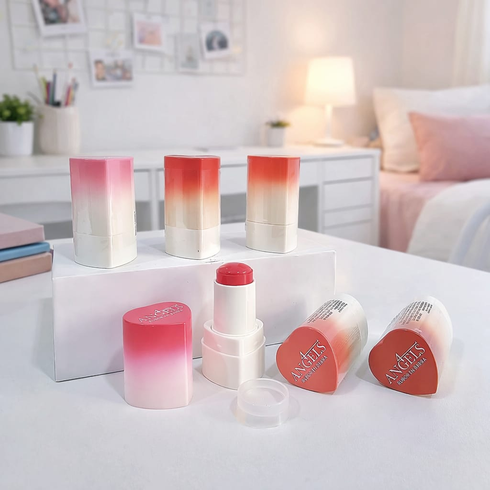 (Rubor en barra "4 Angels" disponible en 6 tonos. Ideal para que no falte en tu maquillaje).