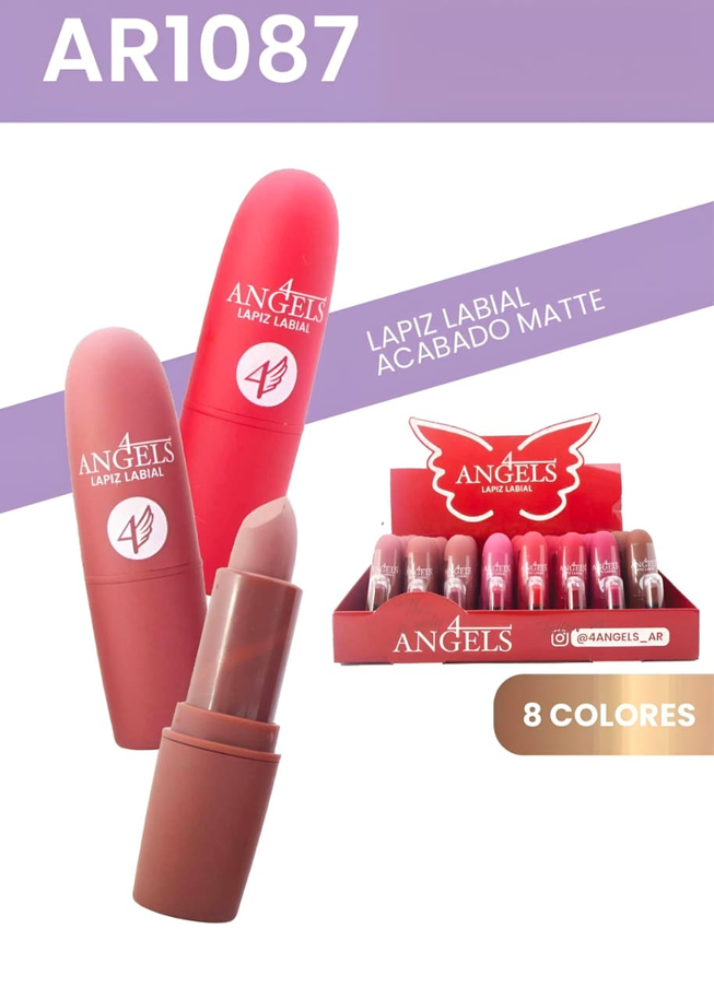( Lápiz Labial "4 Angels" acabado matte. Disponible en 8 tonos).