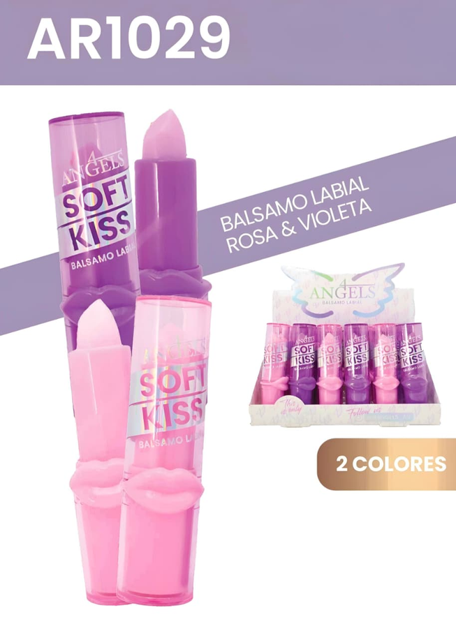 ( Bálsamo Labial Soft Kiss "4 Angels" viene en 2 colores. Ideal para mantener los labios hidratados durante todo el día).