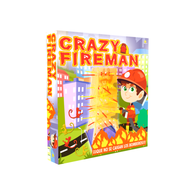 (juego de mesa "crazy fireman", articulo de juguetería, retira del edificio todas las mangueras del color que hayas elegido, tratando de no dejar caer los bomberos al suelo)