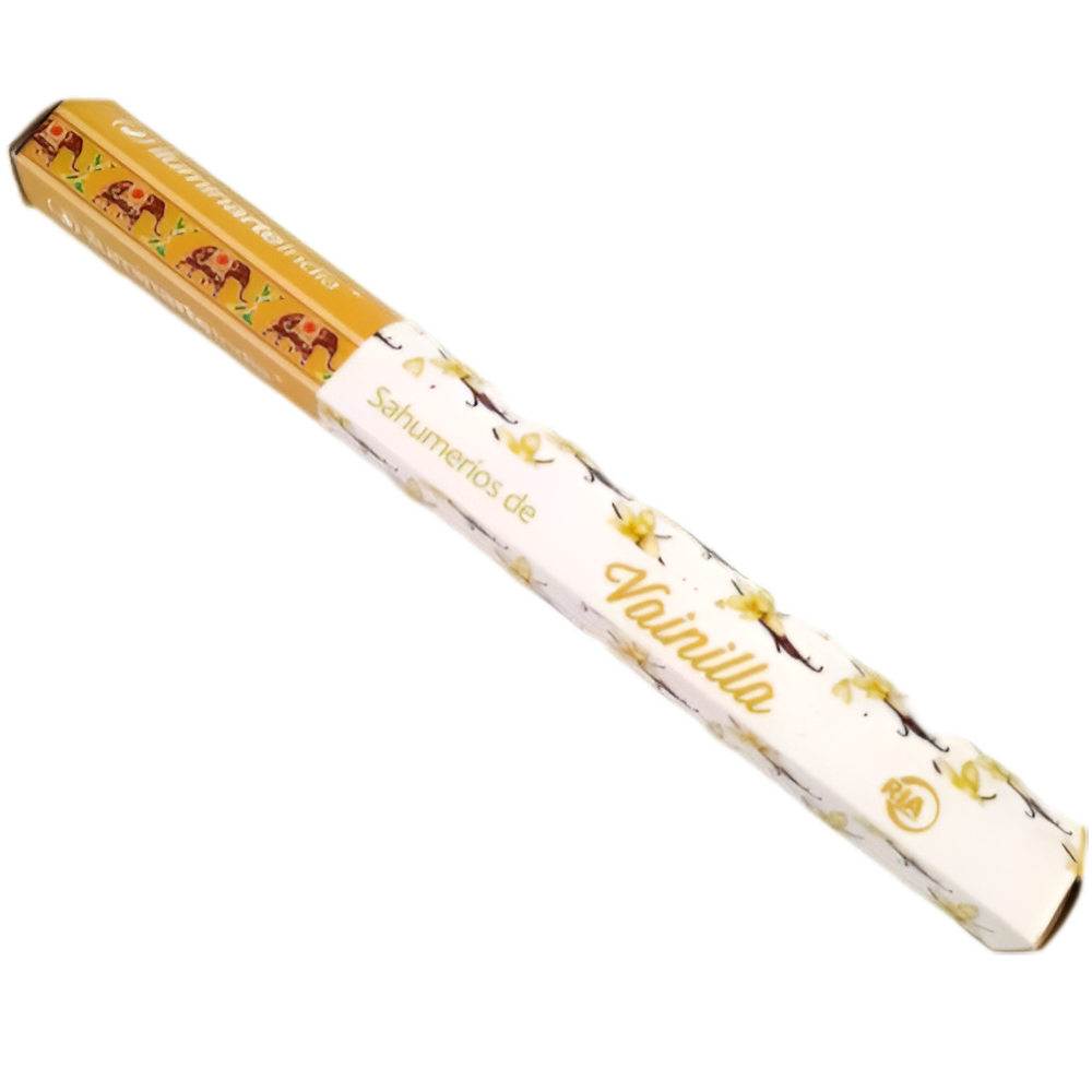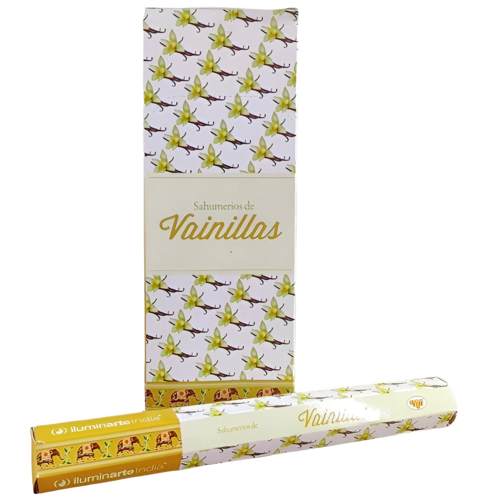 (Sahumerios marca "Iluminarte" caja por 6 packs, en cada packs trae 15 sahumerios con aroma a Vainilla).