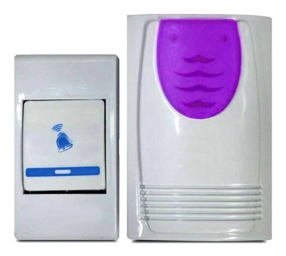 (Timbre inalámbrico, en dos colores, blanco con tapa azul o blanco con tapa violeta. Modelo smart, diseño moderno, control remoto con botón light touch, NO requiere de instalación ni de cableados, es trae un adhesivo para poder colocarlo a su gusto. Su rango es de 100m en espacios abiertos y 50m en hogar. Contiene 32 melodías para elegir, sonido fuerte y claro. El emisor funciona con una pila 23A 12V Incluida en el blíster y el receptor funciona con dos pilas doble AA (NO incluidas) NO es aprueba de agua. Categorizado en: Ferretería)