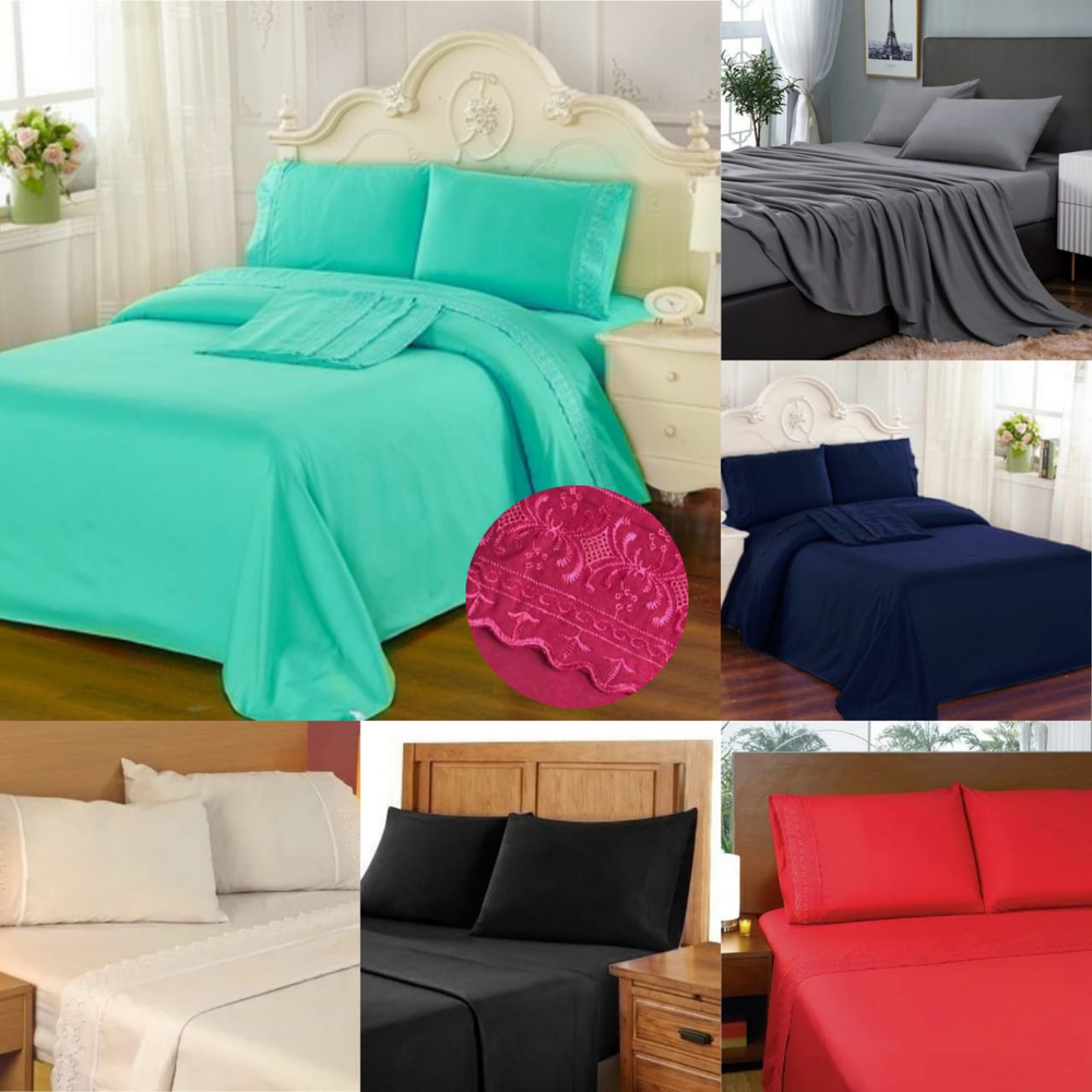(Juego de sabanas de 3 piezas, con diseño CLASICO liso con puntillas de encaje Para cama de 1 plaza y media. ) 𝑪𝒐𝒏𝒕𝒊𝒆𝒏𝒆 : 1 𝒔𝒂𝒃𝒂𝒏𝒂 𝒂𝒋𝒖𝒔𝒕𝒂𝒃𝒍𝒆, 1 𝒔𝒂𝒃𝒂𝒏𝒂 𝒔𝒖𝒑𝒆𝒓𝒊𝒐𝒓 𝒚 1 𝒇𝒖𝒏𝒅𝒂 𝒑𝒂𝒓𝒂 𝒂𝒍𝒎𝒐𝒉𝒂𝒅𝒂 Medidas: